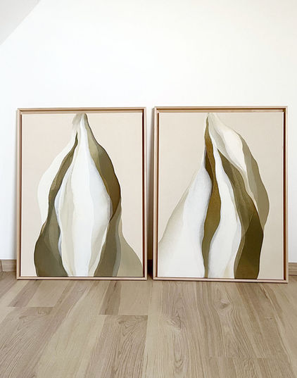 Der Entstehungsprozess meiner Kunst ist für mich sehr viel mehr als nur das Malen an sich. Es gehört auch das sorgfältige Zusammenfügen des Keilrahmens, Bespannen der Leinwand und das Anbringen der Schattenfugenrahmen dazu. Und vor allem das Ausprobieren. Das Scheitern. Das Neubeginnen. Das Chaos. Das Warten. Schicht für Schicht. Das Hineinfühlen und die vielen Stunden voller Gedanken, die in jedes Werk fließen.